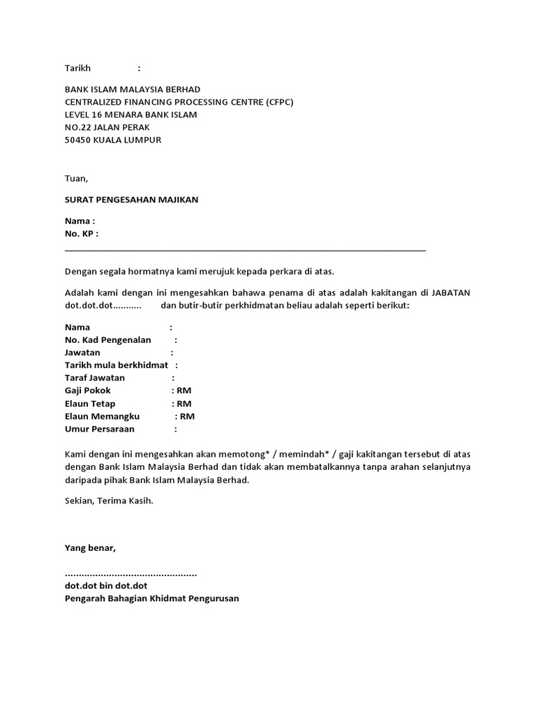 I M Reading Surat Pengesahan Pekerja Membuka Akaun Bank On Scribd Surat Reading Template Free